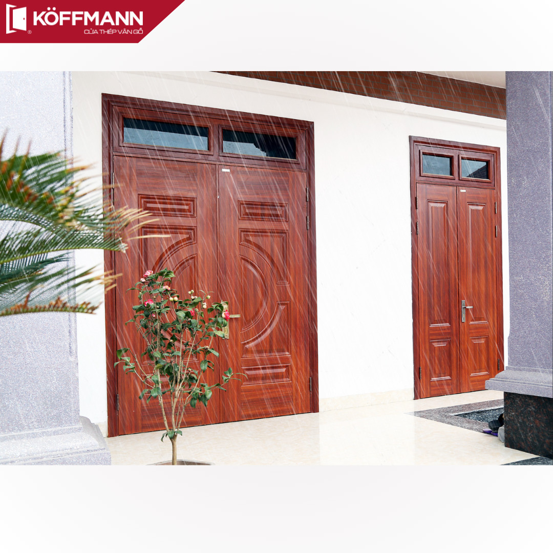 CỬA THÉP VÂN GỖ TẠI PHÚ QUỐC | cửa chính 4 cánh